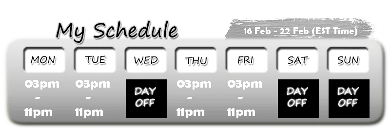 Ahegao, Pokazivanje, Pokazivanje mišića, Pseća poza, Striptiz, Fetiš stopala, Drkanje, Prstenjanje, Masturbacija, Analne igračke, Seks Igračke, Ejakulacija, Show s uljem